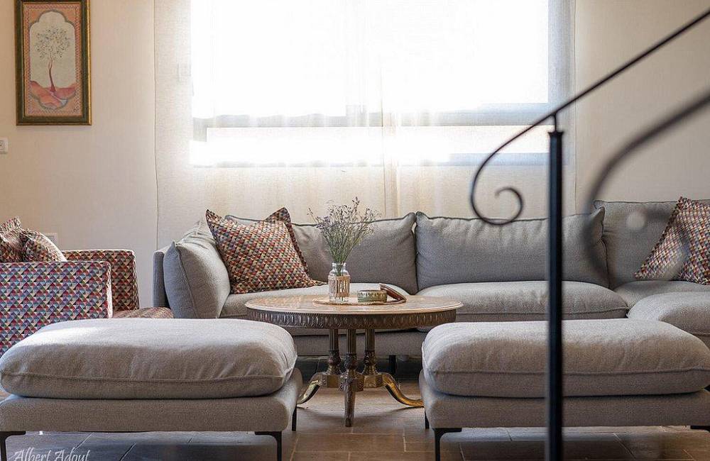 סלון רחב ידיים עם פינת ישיבה ושולחן מרכזי