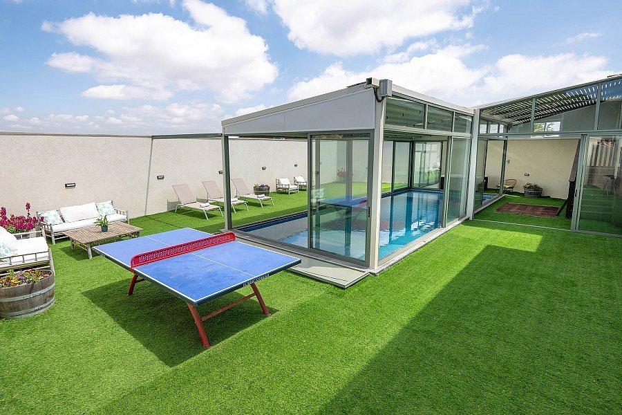 קיימת יציאה למרפסת עם שולחן סנוקר ופינת אוכל