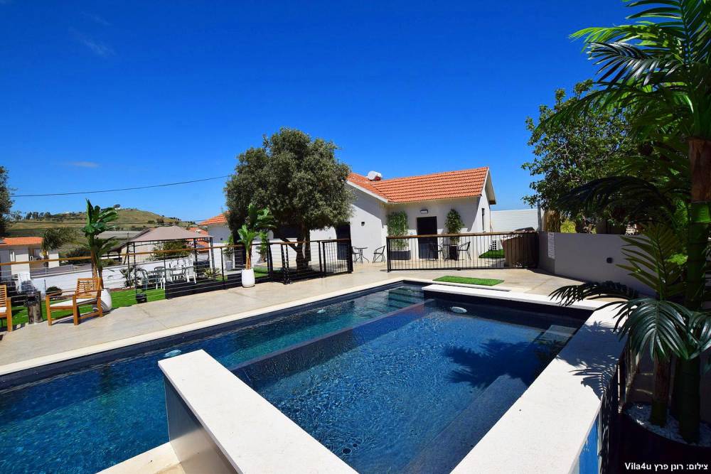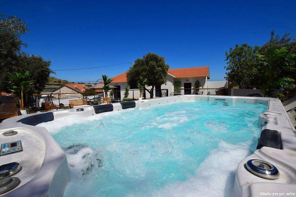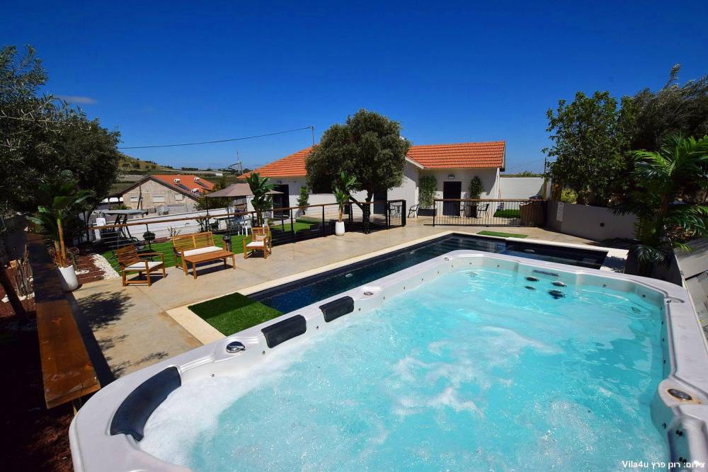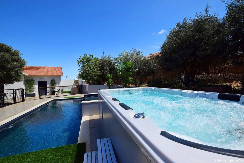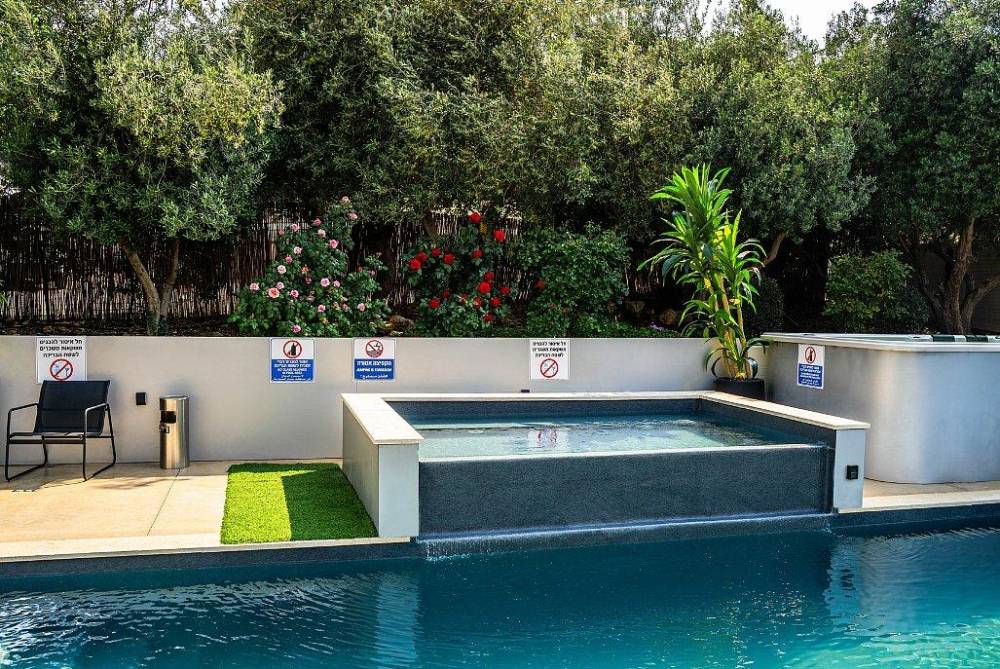 במתחם תוכלו להנות ממתחם חיצוני מטופח עם מדשאות, פינות ישיבה, מטבח חוץ, עמדת מנגל מקצועית, בריכת זרמים מגודרת ומחוממת ואף ג'קוזי ספא מפנק.