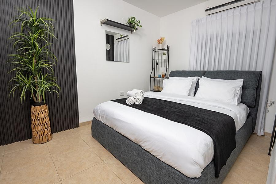 מיטה זוגית, טלוויזיה, מזגן ושידות