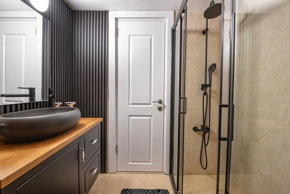 חדר רחצה עם מקלחת ושירותים