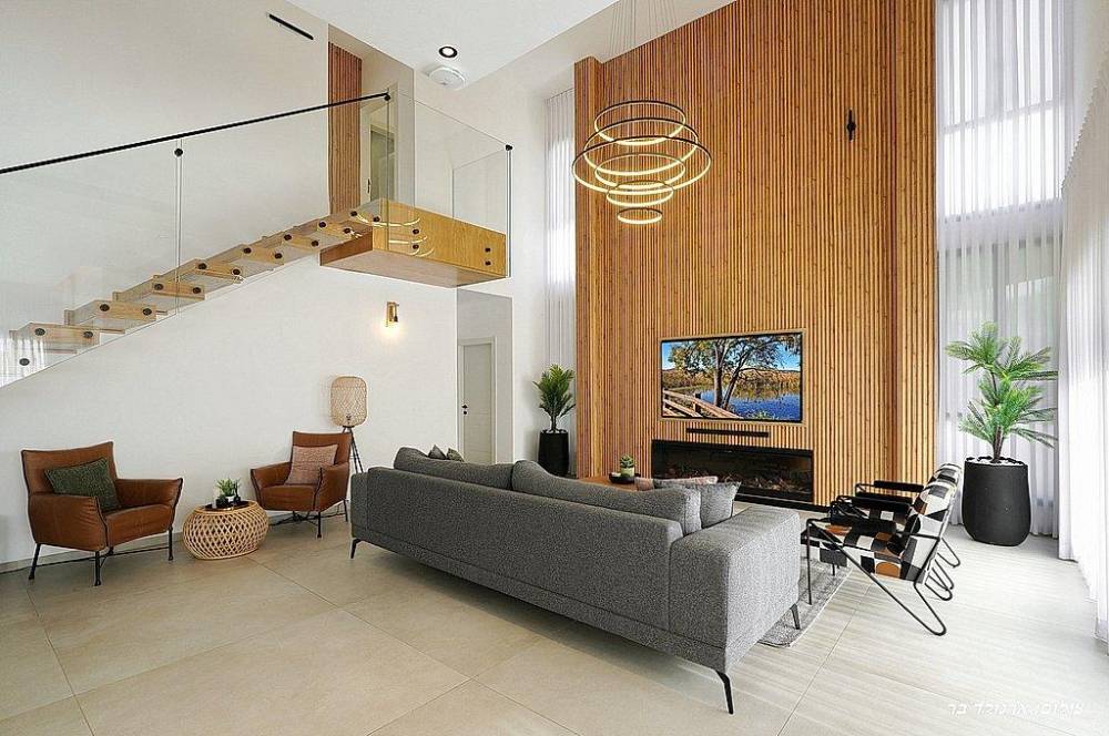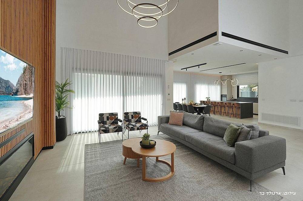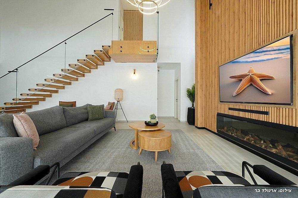 סלון + כורסה ומסך שטוח בגודל 75 אינץ'