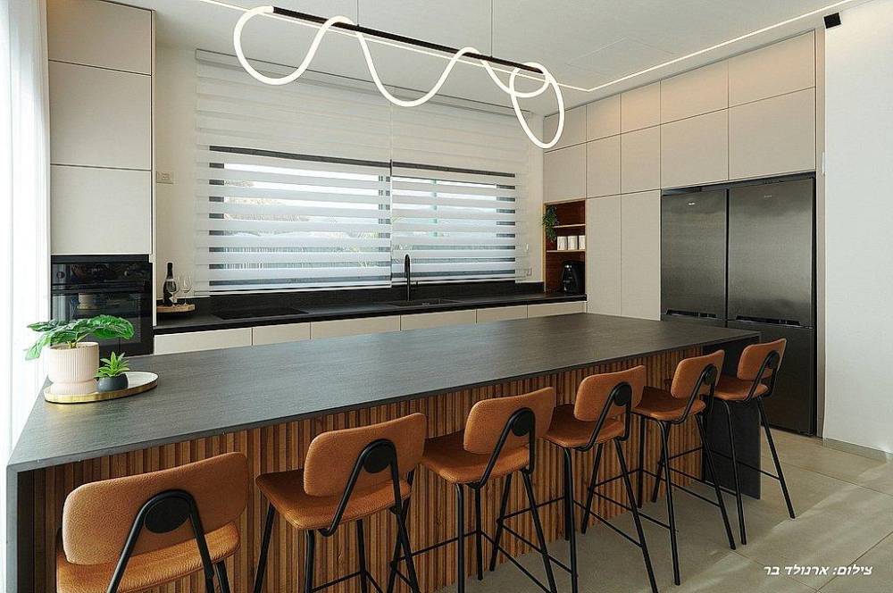 אבזור במטבח: קומקום חשמלי, תנור, תמי 4, מכונת אספרסו, מקרר, מדיח כלים, כיריים חשמליות, מיקרוגל כלי אוכל והגשה