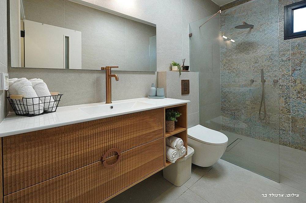 חדר רחצה פרטים עם מקלחת ושירותים
