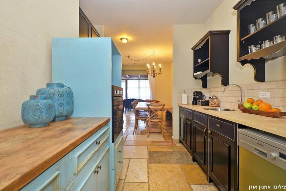 מטבח ובו: מיקרוגל, מדיח, פלטה חשמלית לבישול, תמי 4 , תנור, כלי הגשה, סירים