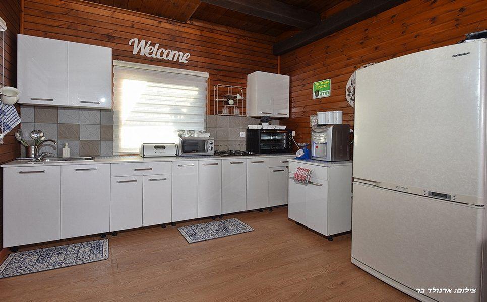 מיקרוגל, תנור אפייה, מקרר, קומקום, כיריים גז, תמי 4, מכונת אספרסו, כלי אוכל והגשה, כלי בישול.