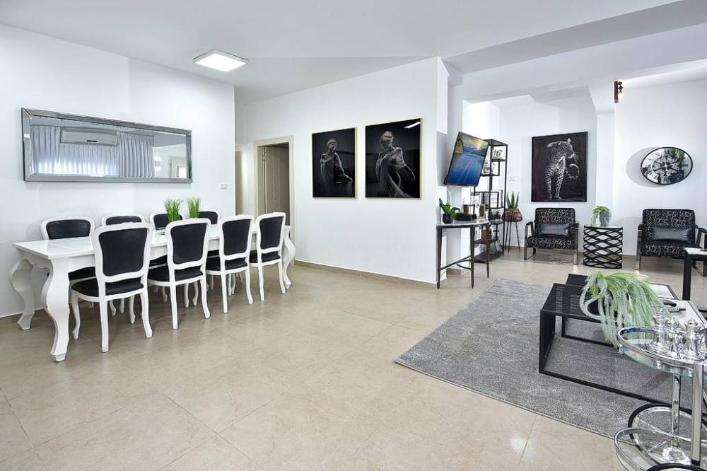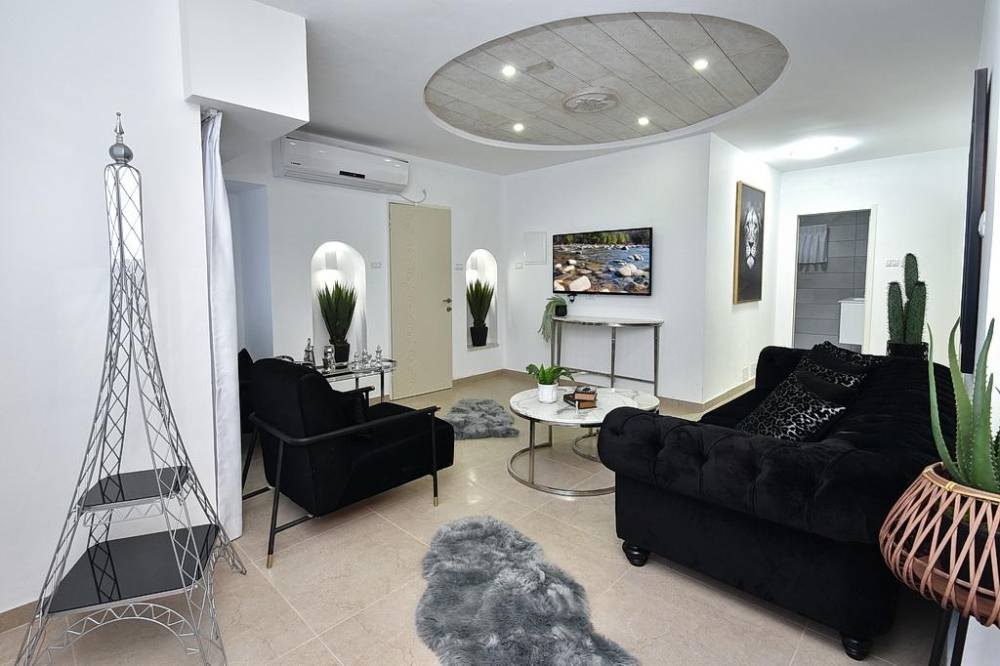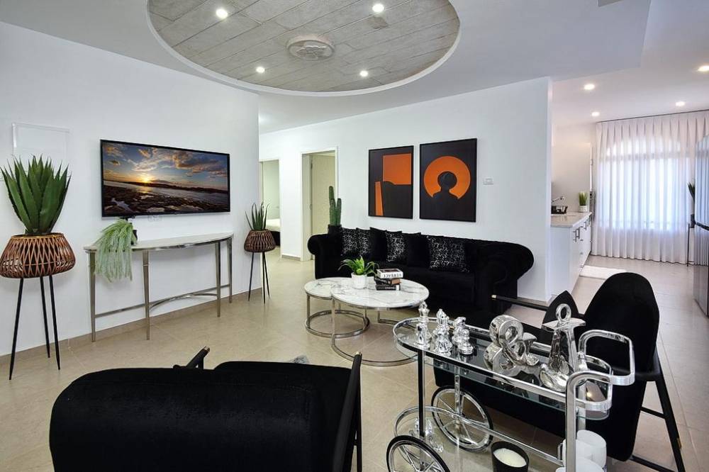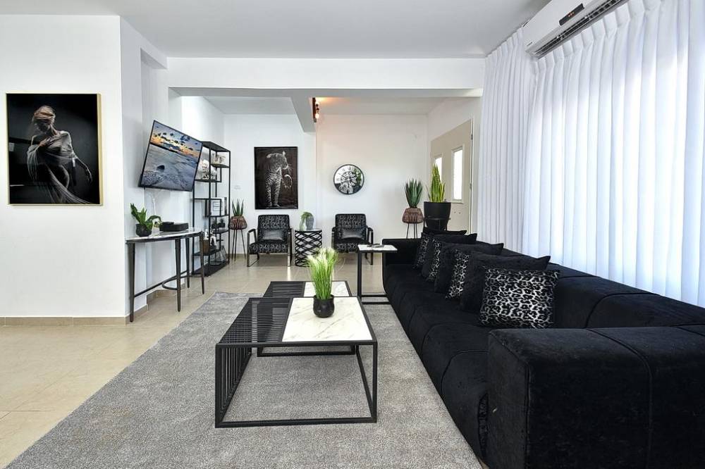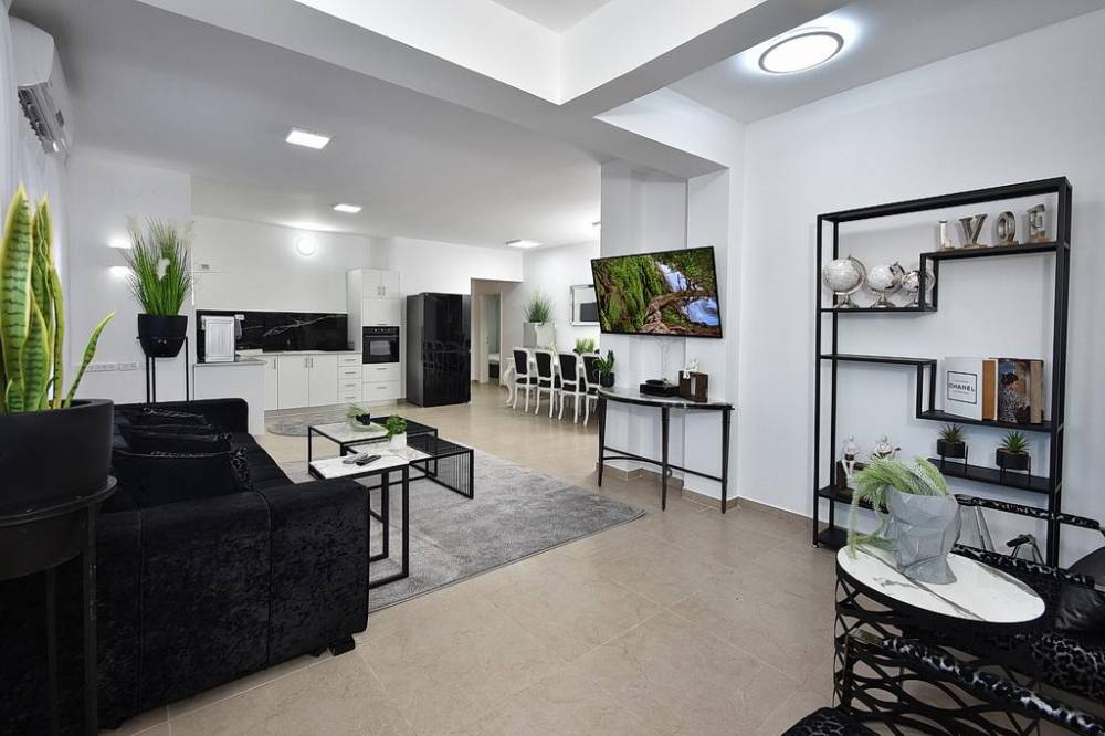 סלון מרווח ונוח עם מסך 50 אינץ + ערוצי הוט, מקרן קול, נטפליקס