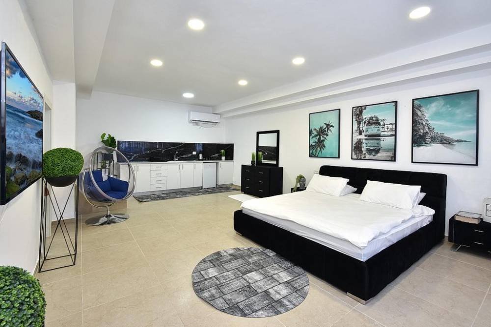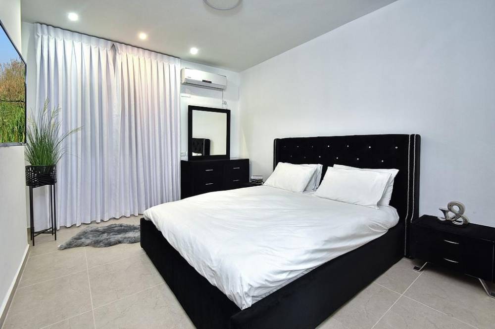 מאובזרים במיטה זוגית, מיזוג אוויר, טלוויזיה בגודל 50 אינץ' ושידות אחסון (3 חדרים עם חדר רחצה פרטי והשאר עם חדרי רחצה משותפים)