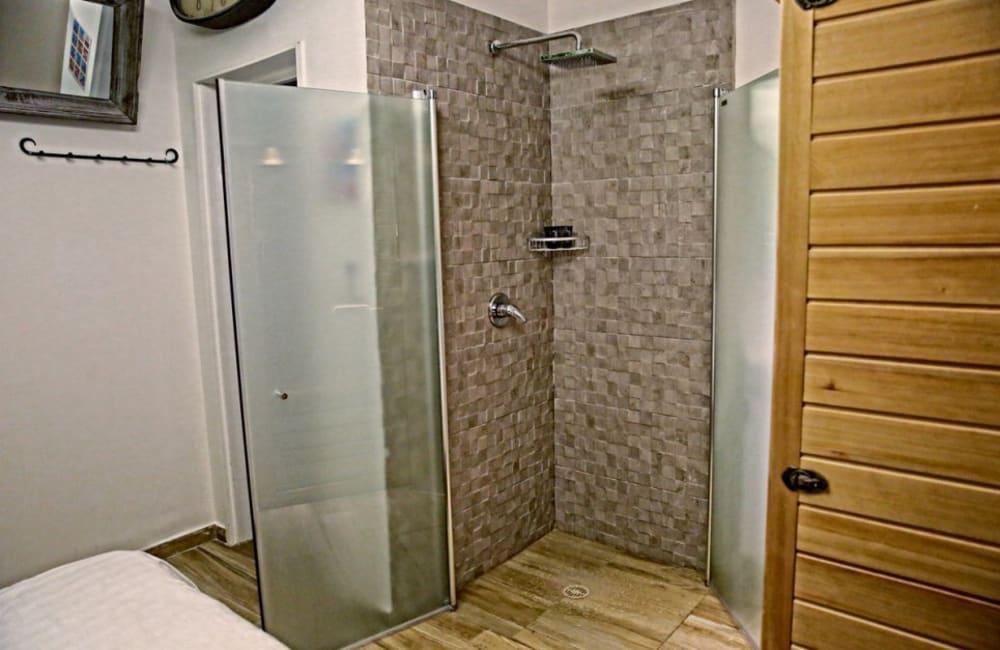 מיטה זוגית מוצעת, ספה נפתחת, חדר רחצה פרטי, מיזוג אוויר, שידות ומסך צפייה