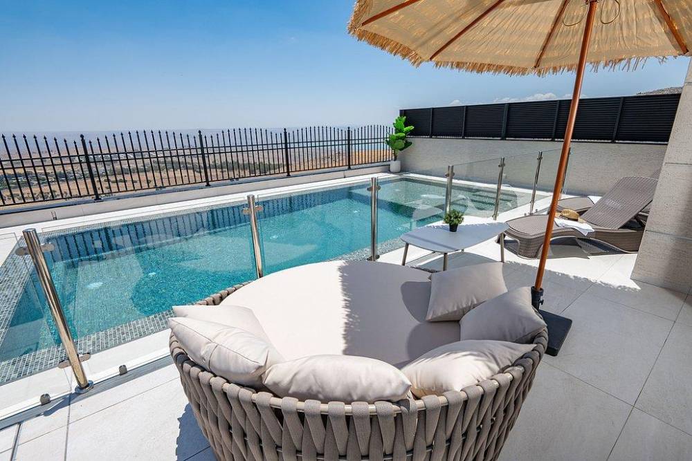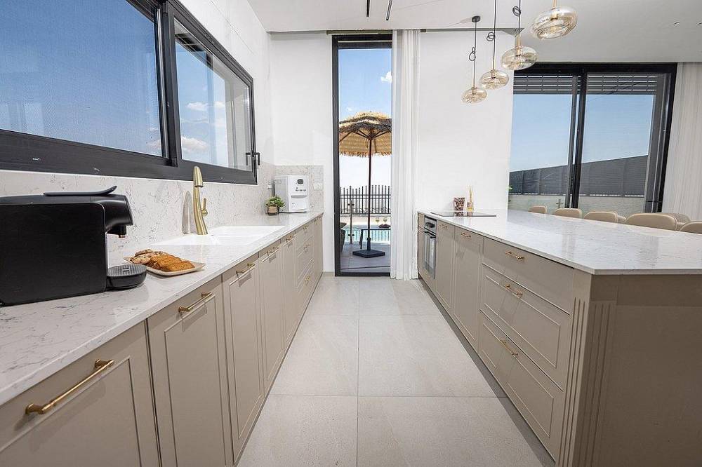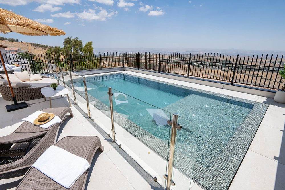 הוילה בנויה על פני 3 קומות ומציעה 8 חדרי שינה מעוצבים, שני מטבחים מאובזרים, סלון רחב ידיים, מתחם משחקים, מרפסות עם נוף מהמם ובריכה פרטית מחוממת מול נוף גלילי פתוח.