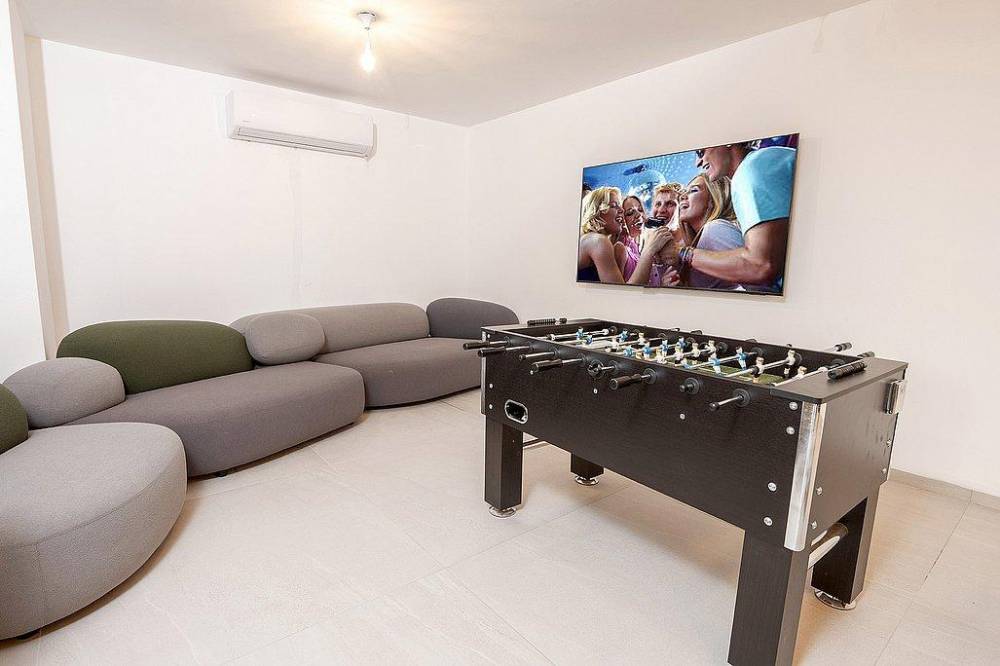 3 חדרים, טלוויזיה, מזגן, ספות נפתחות, שולחן סנוקר, שולחן כדורגל, מטבח נוסף, שירותים ומקלחת נוספים.