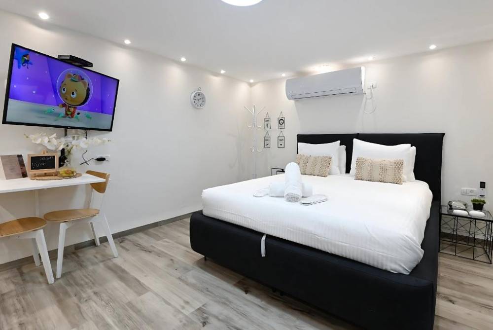 ביחידה המעוצבת תמצאו מיטה זוגית רחבה, טלוויזיה, מיזוג אוויר, חדר רחצה יוקרתי, ארון בגדים, מטבחון הכולל מקרר, מיקרוגל, קומקום חשמלי ומכונת קפה.