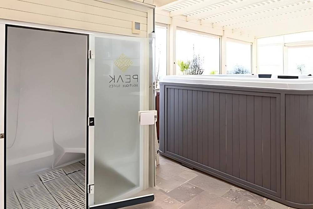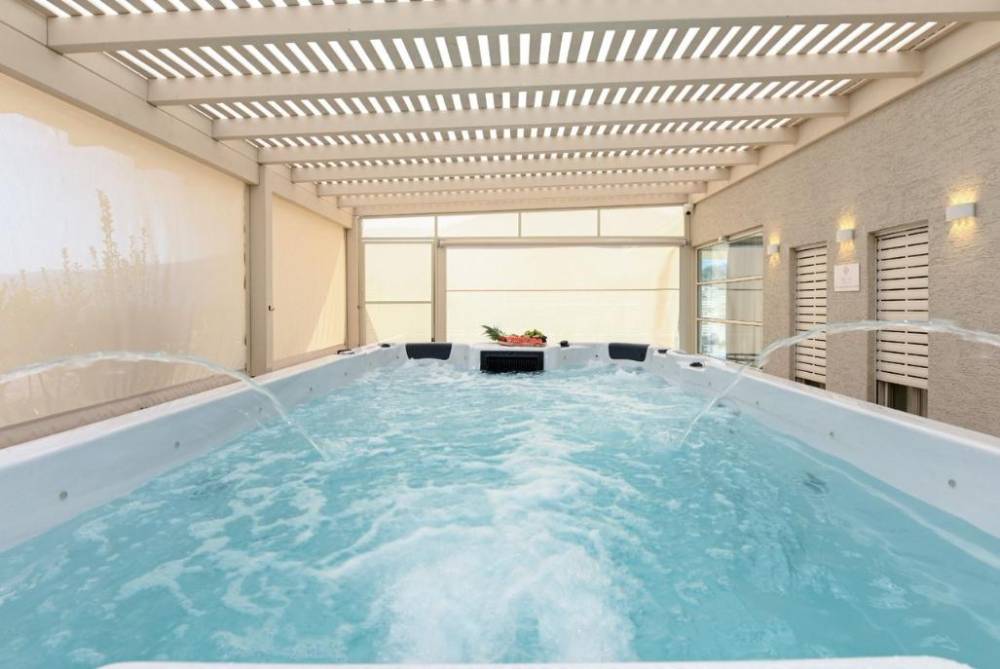 2 סוויטות זהות עם בריכות פרטיות ומחוממות עם זרמים, חצר פרטית, ומתקן ספא (כל אחת בגודל 40 מ"ר)
