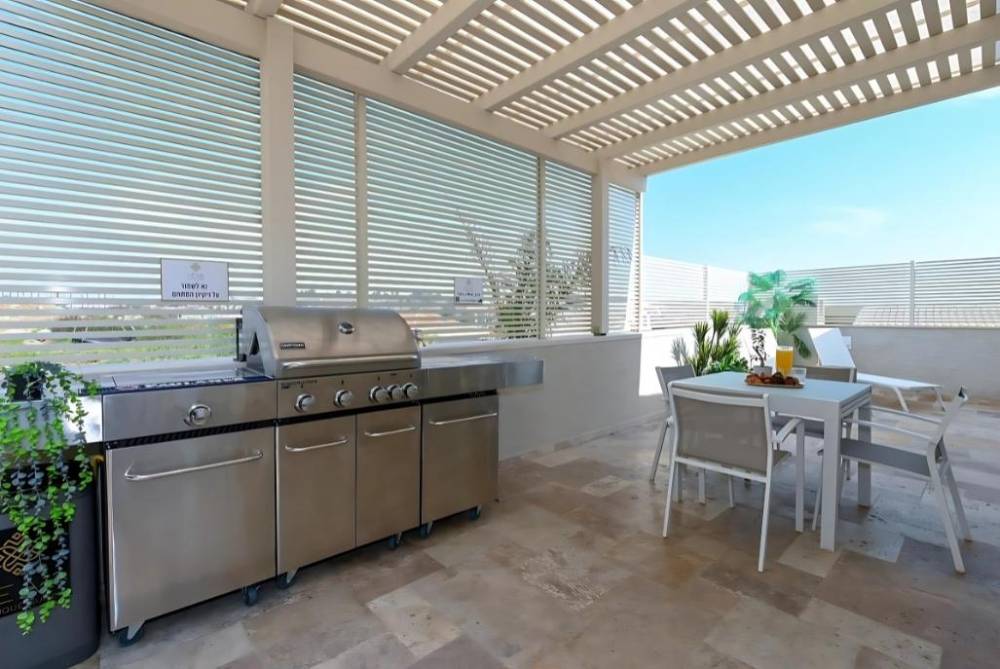 בחצר הסוויטה נמצא מערכת שמע, ערסלים, מיטות שיזוף, עמדת מנגל.