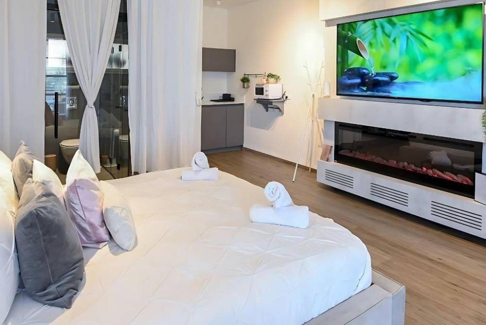 בתוך הסוויטה תמצאו מיטה זוגית קינג סייז, טלוויזיה [בכבלים ונטפליקס], מקלחת וישרותים מפנקים ומאובזרים בכלי רחצה ומגבות, קמין חשמלי, מטבחון ופינת אוכל