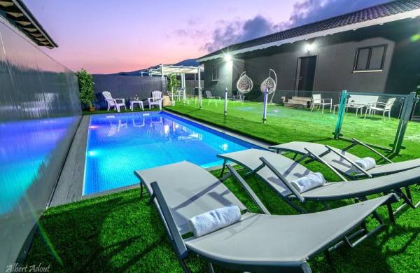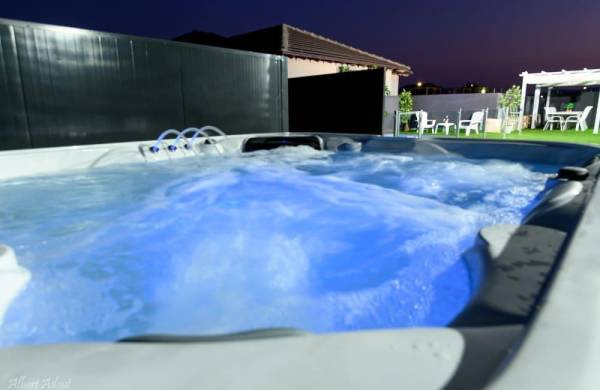 בריכת שחייה בנויה, מגודרת ומחוממת מאפשרת רחצה בכל עונות השנה, לצידה ג’קוזי ספא חיצוני גדול שמוסיף בדיוק את הפינוק שצריך לחופשה מושלמת.