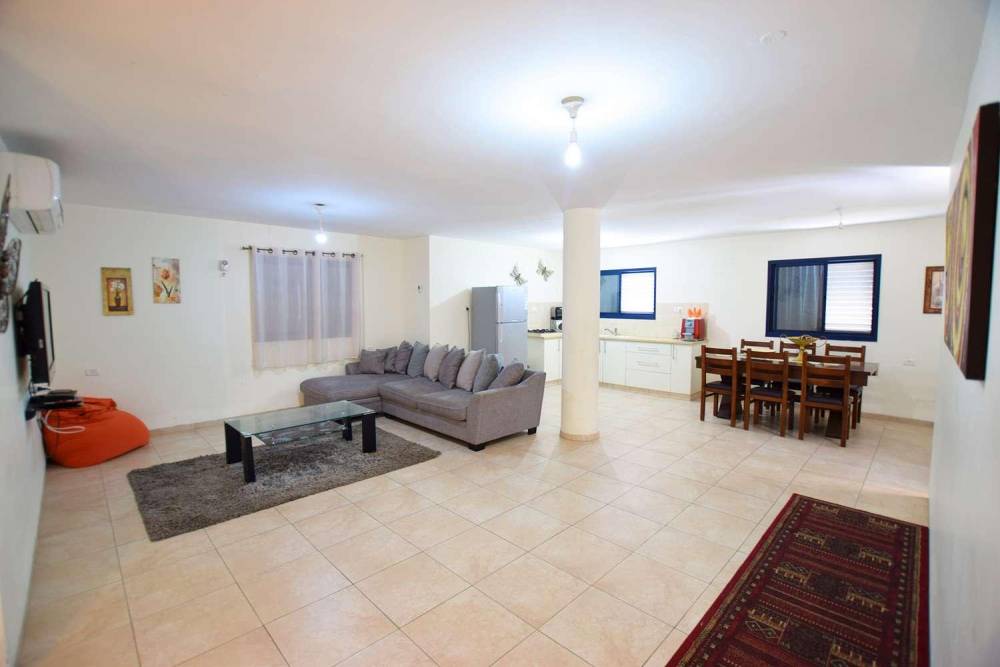 סלון גדול ומרווח עם מערכת ישיבה וטלוויזיה עם חיבור לערוצי HOT