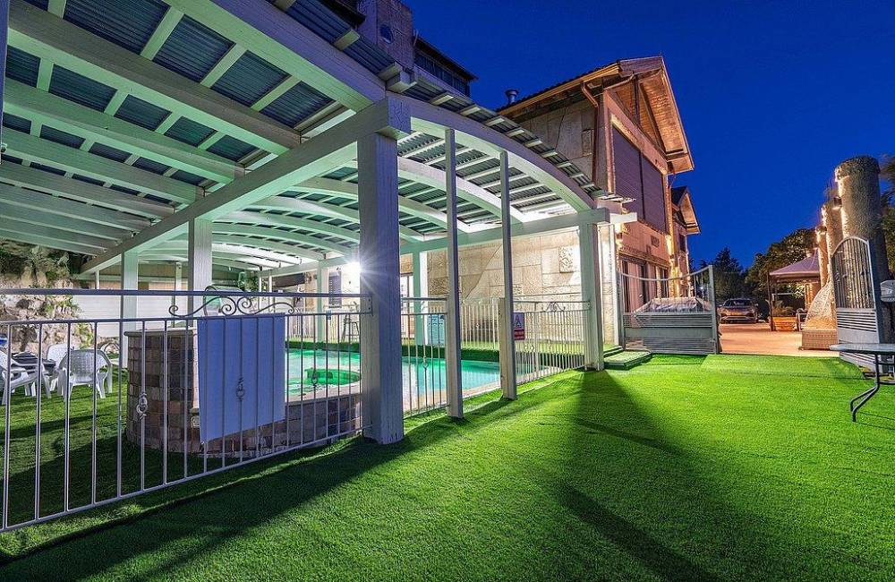 - בריכת שחייה פרטית מחוממת מקורה ומגודרת עם מפל מים