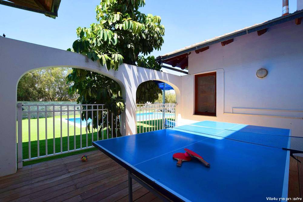 פטיו מדק עם מערכת ישיבה ושולחן פינג פונג
