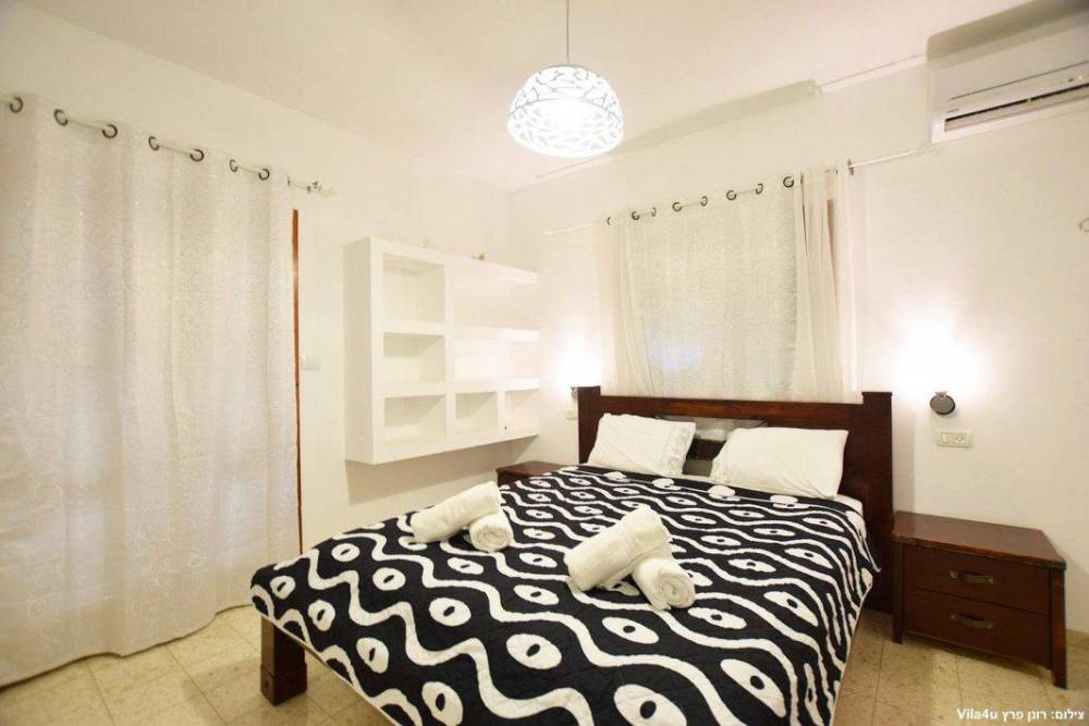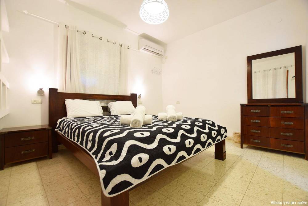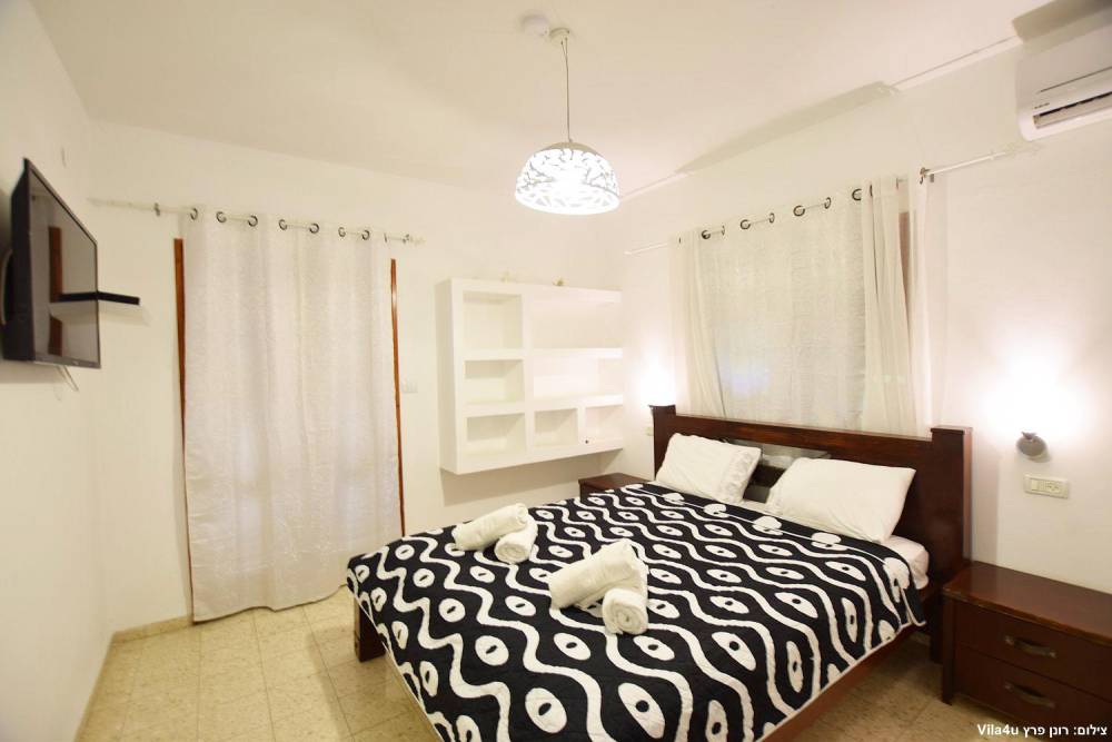 חדר שינה 5- מיטה זוגית, מיזוג אוויר, טלוויזיה עם חיבור ל-HOT, שידות וארונות לאחסון ומנורת לילה