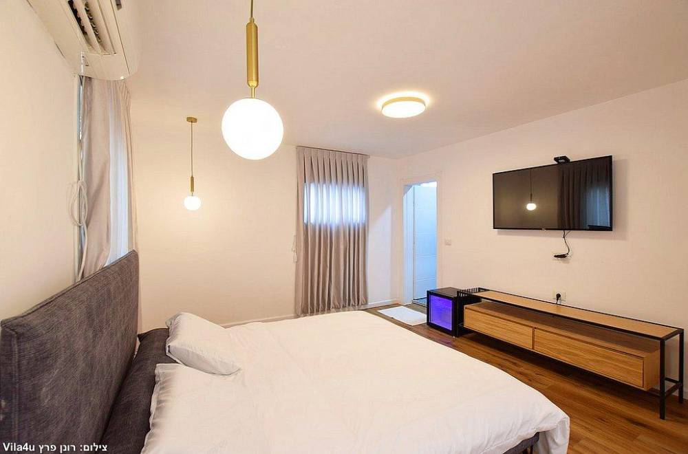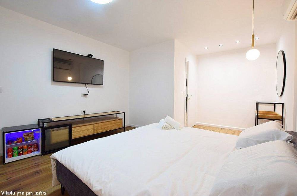 מיטה זוגית, מיני בר, מזגן , טלוויזיה מראה ושידה