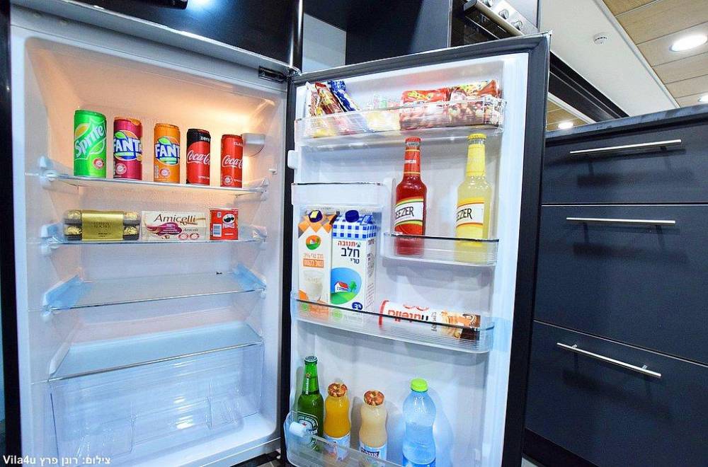 אבזור המטבח: מקרר, מיקרוגל, תנור, קומקום חשמלי ומכונת אספרסו