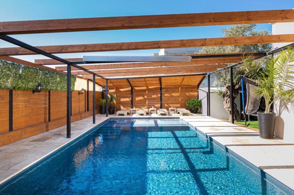 בריכת שחייה מחוממת ומקורה בגודל 11X4 עומק 1.50