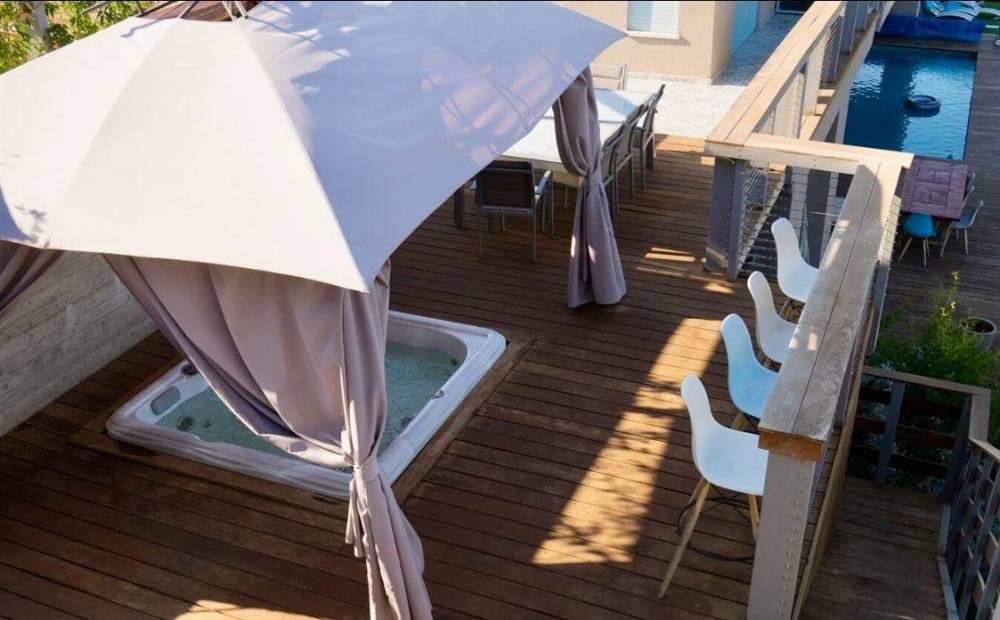 - יציאה לג'קוזי ספא ופינת ישיבה, וירידה לחצר המתחם