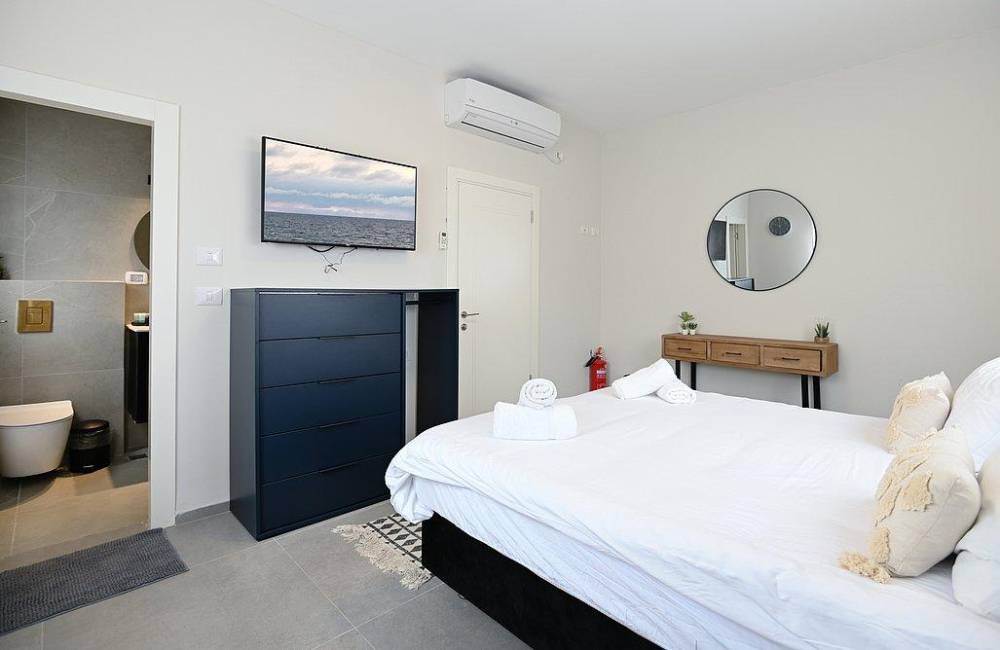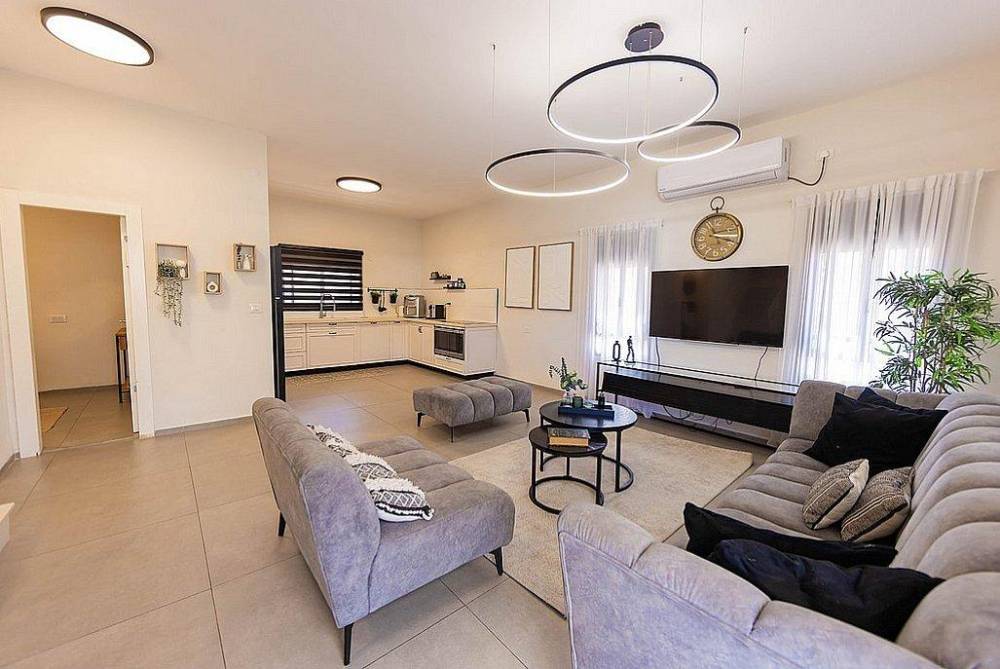 מטבח מאובזר קומפלט הכולל: מקרר, כירת בישול חשמלית, מדיח כלים, תנור אפייה, מתקן מים חמים וקרים, מכונת קפה, טוסטר, מיחם חשמלי, פלטה, כלי בישול והגשה.