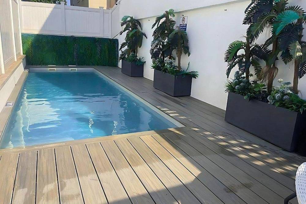בריכת שחייה בנויה מגודרת ונעולה, מחוממת ומקורה בעונת החורף