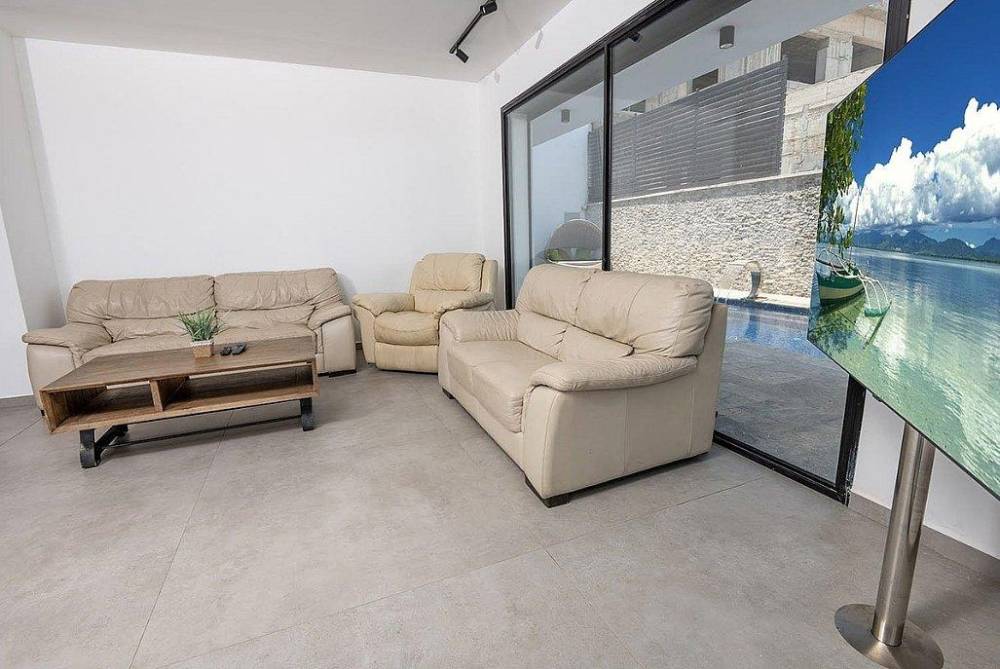 סלון גדול עם 2 ספות וטלוויזיה עם חיבור לערוצי YES