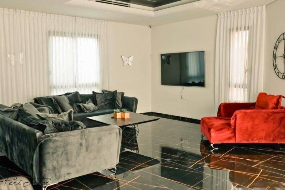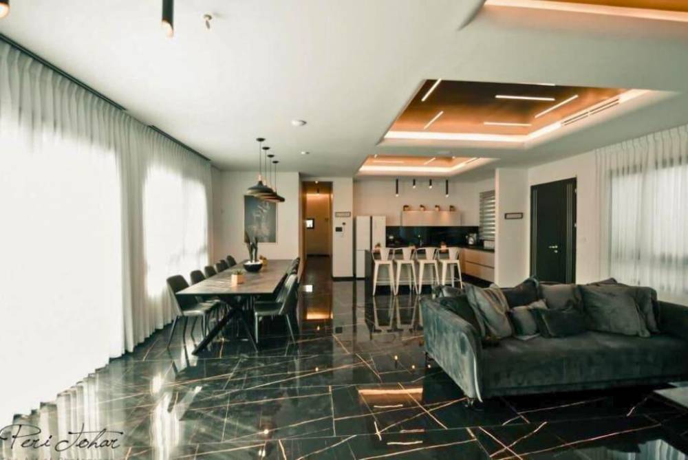סלון יוקרתי, מערכת קולנוע ביתית, מסך LCD 75 אינץ' , חיבור ל-YES עם מבחר ערוצים
