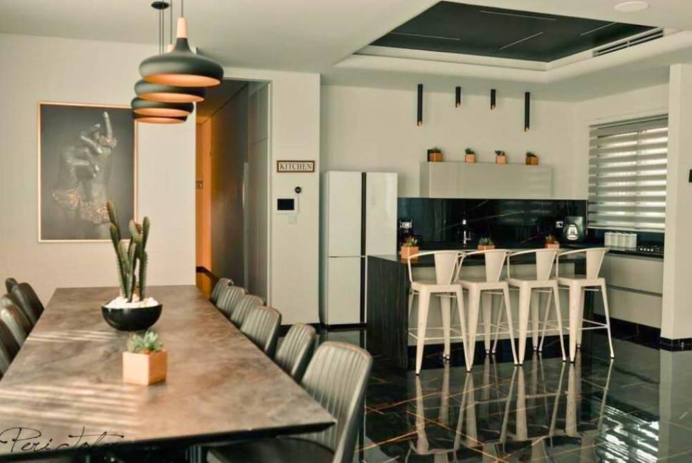 מטבח מאובזר הכולל: מקרר גדול ומקרר נוסף, כיריים לבישול, תנור אפייה, חשמלי, בר מים תמי 4