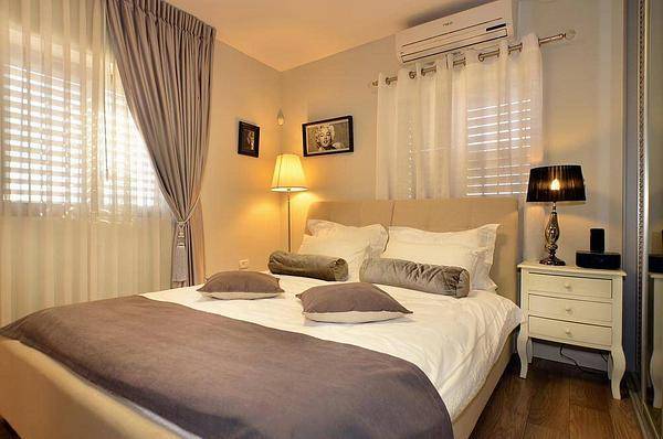 מיטה זוגית מוצעת, מיזוג אוויר, שידות ומסך LCD