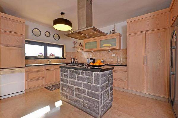 מטבח מאובזר הכולל: מקרר גדול, מדיח כלים, בר מים, טוסטר, תנור כיריים לבישול, פלטה מיחם ומכונת אספרסו