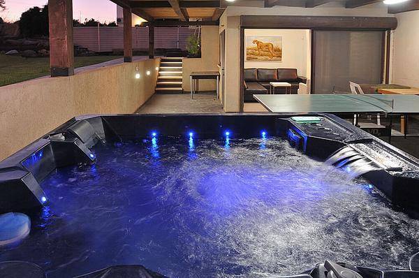 בריכה בנויה מחוממת, מגודרת מידות: 8.5×4.5 מטר, עומק מקסימלי: 1.7 מטר