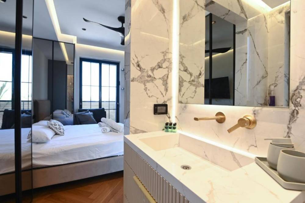 לכל חדר שינה טלוויזיה, שידות אחסון ומיזוג אוויר.