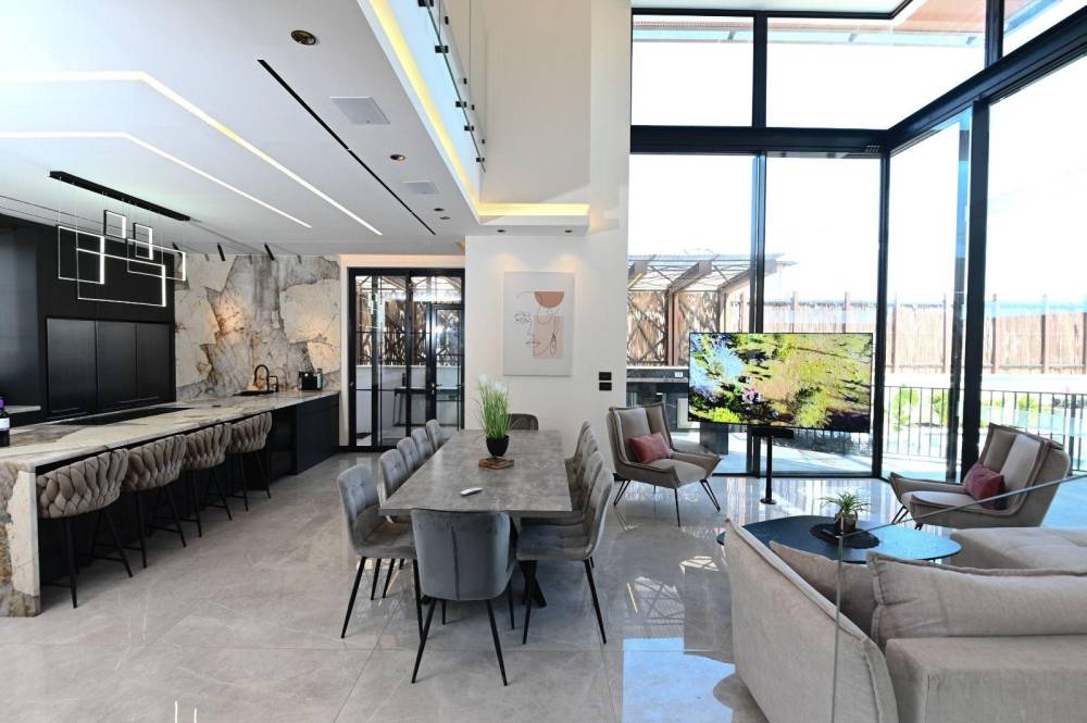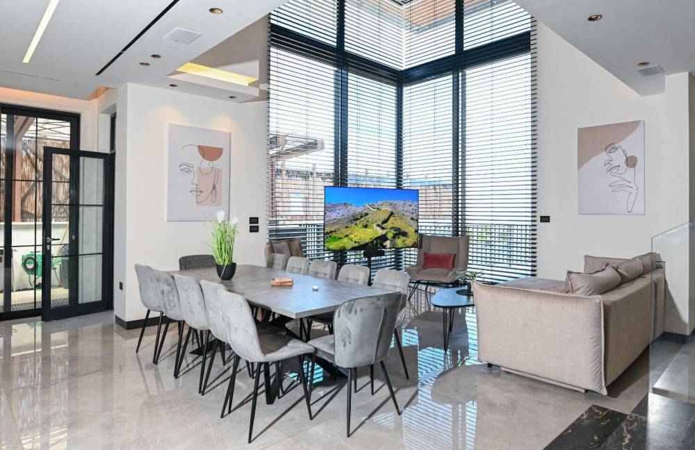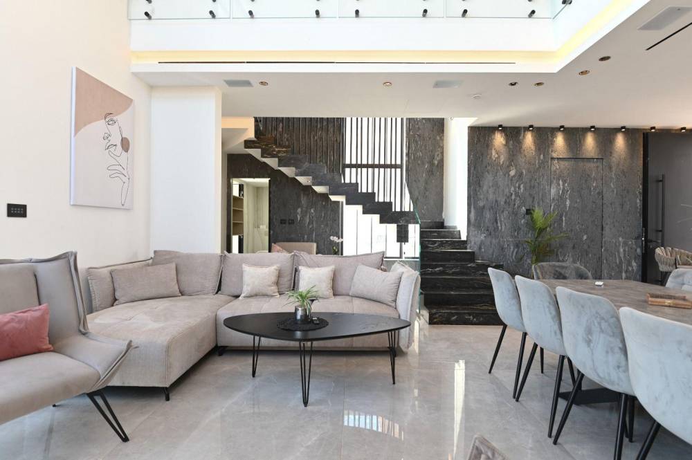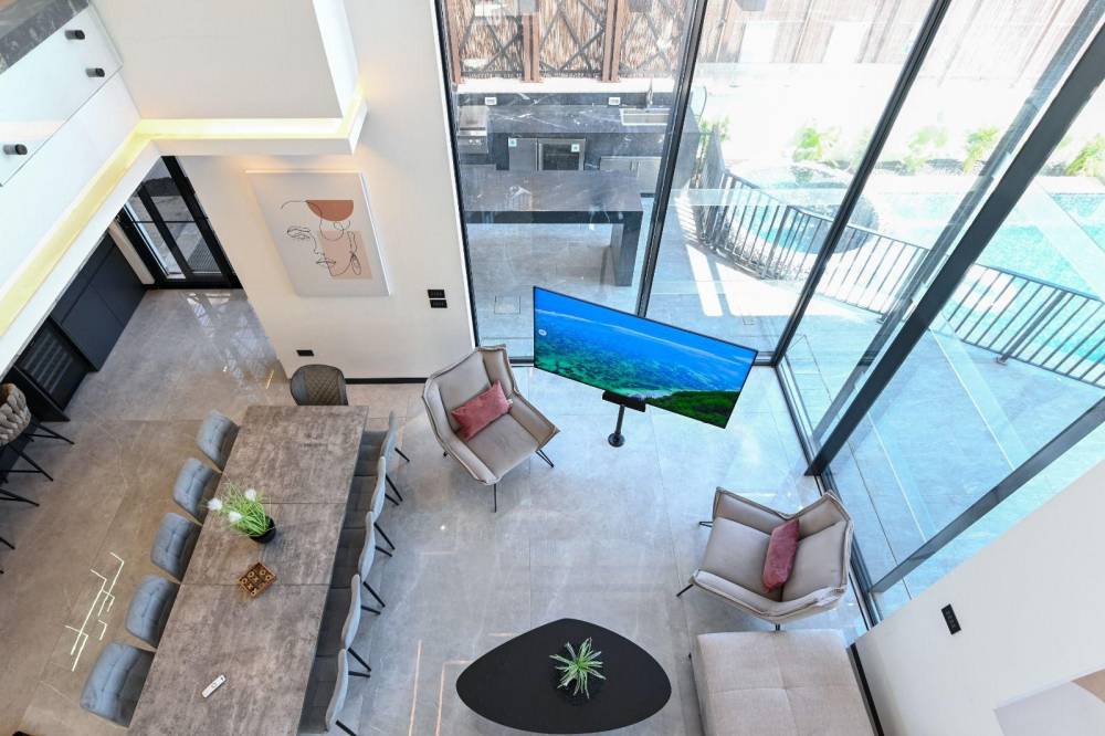 סלון מפנק עם מערכת ישיבה וטלוויזיה (גודל 75 אינץ').