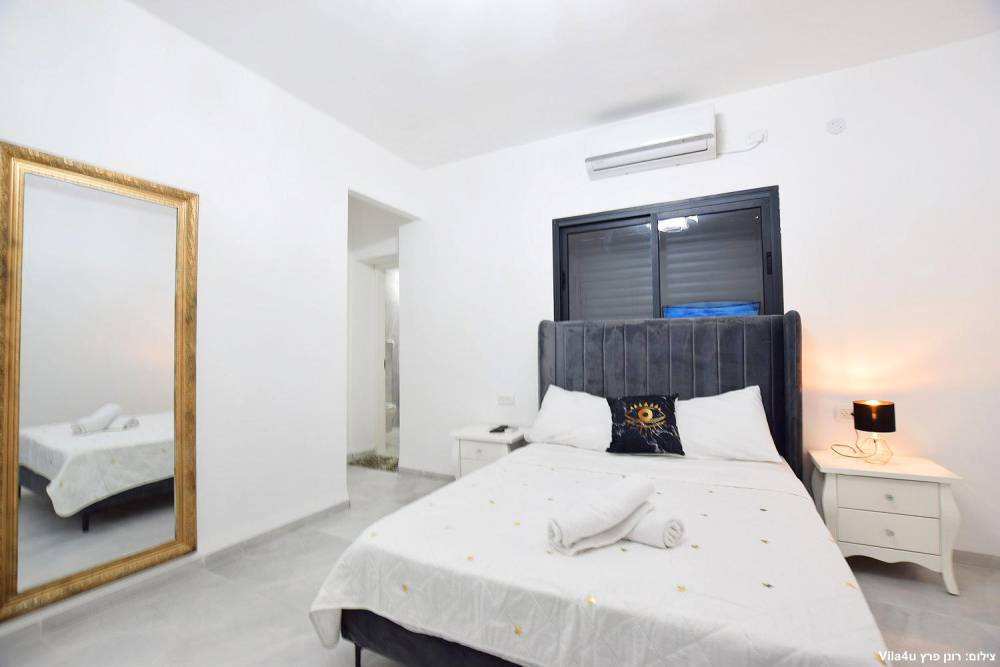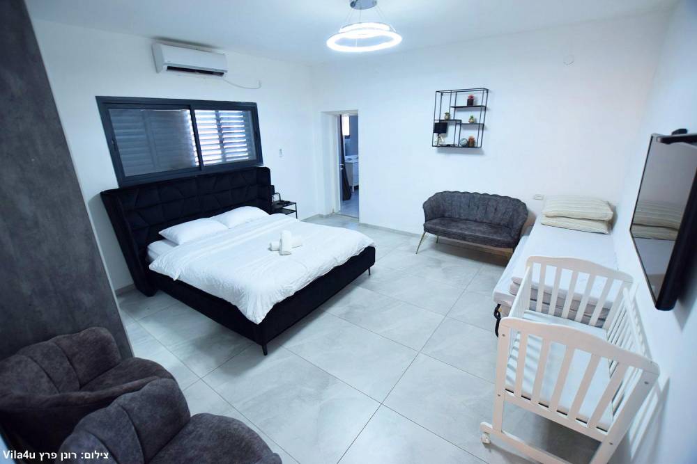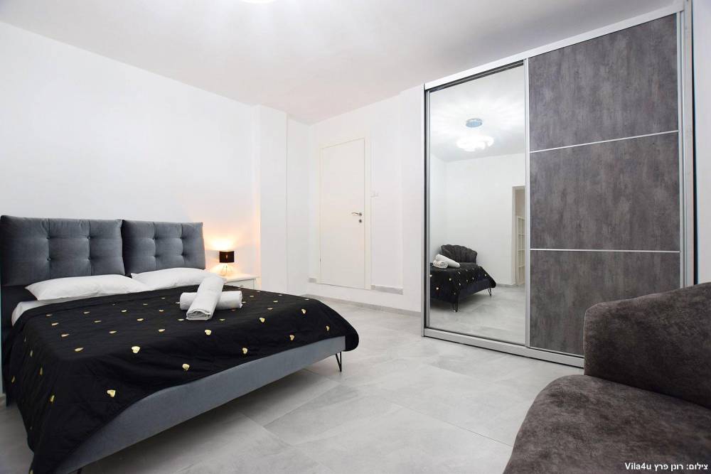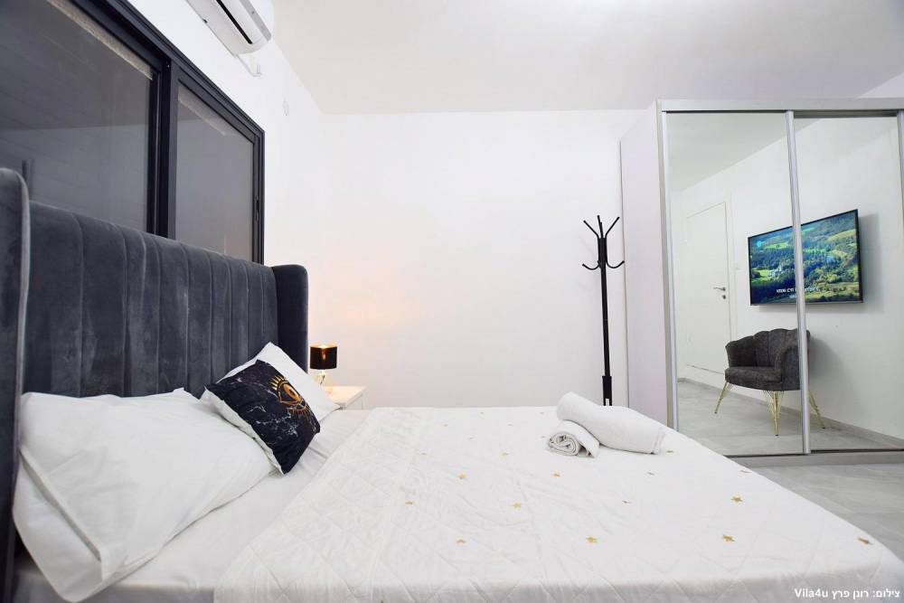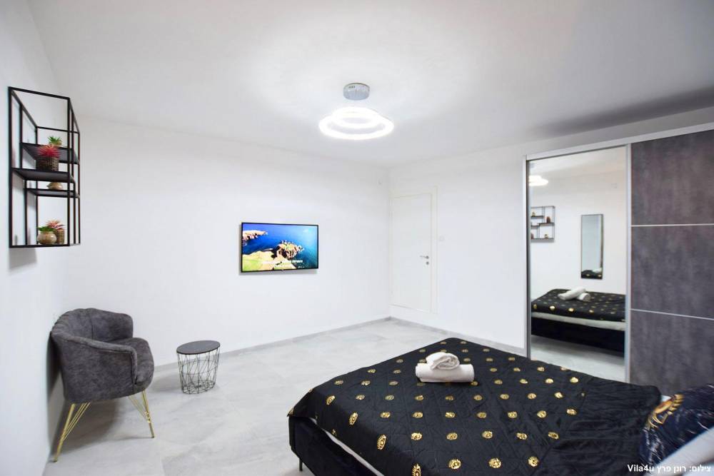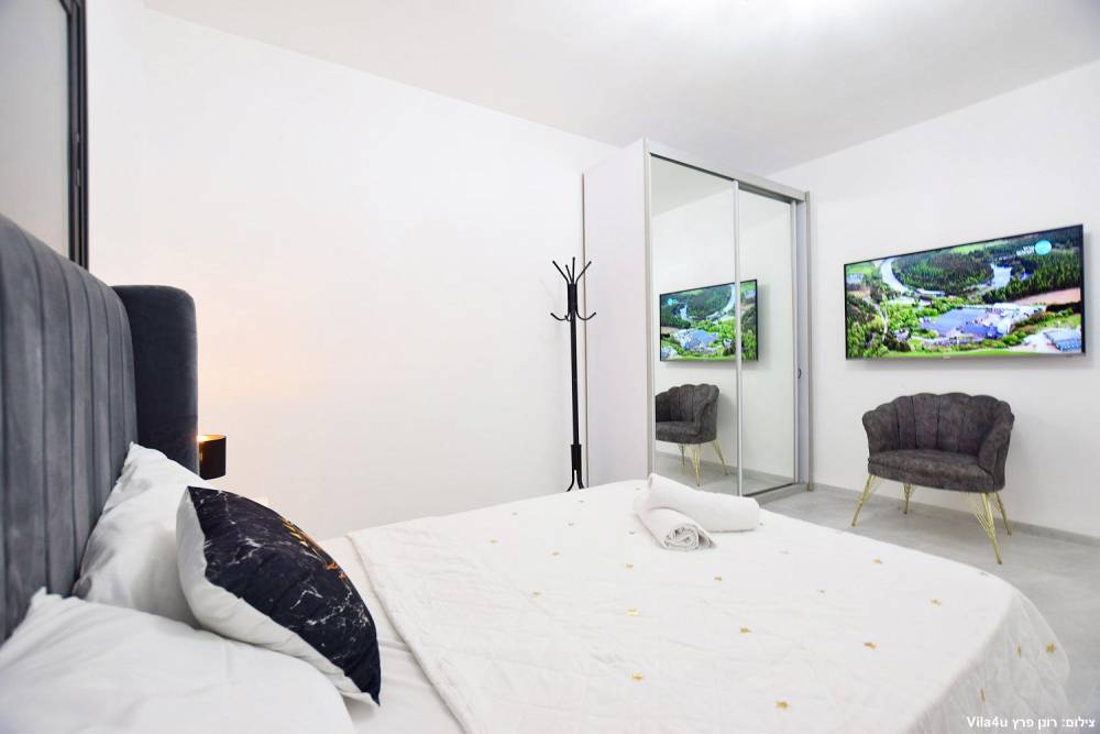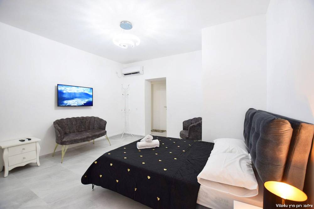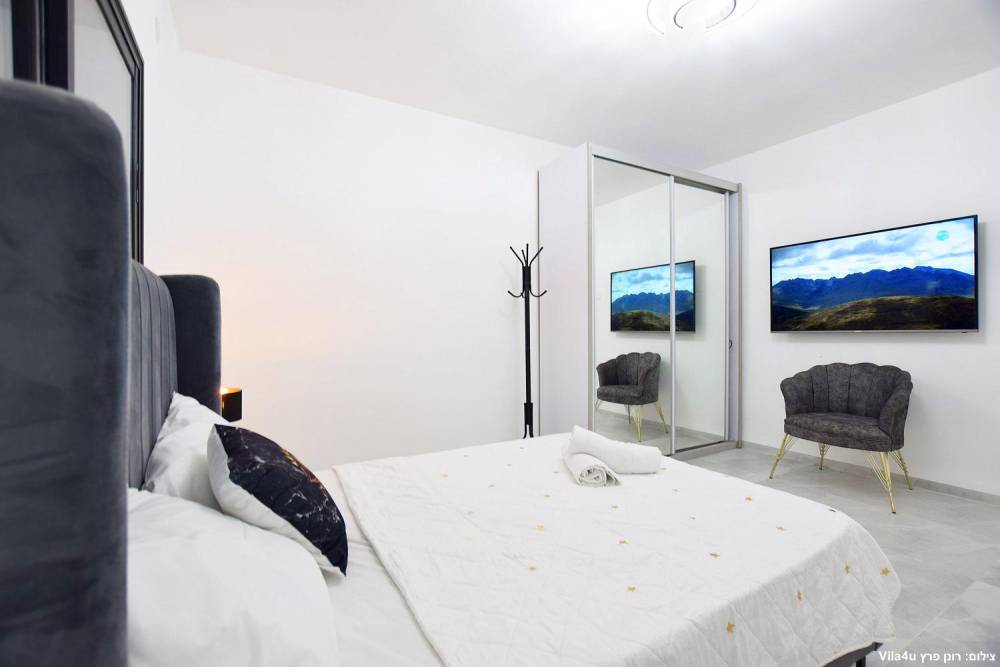 מיטה זוגית, שידה, מסך צפייה, מיזוג אוויר, מנורת לילה ארון בגדים, פינת ישיבה