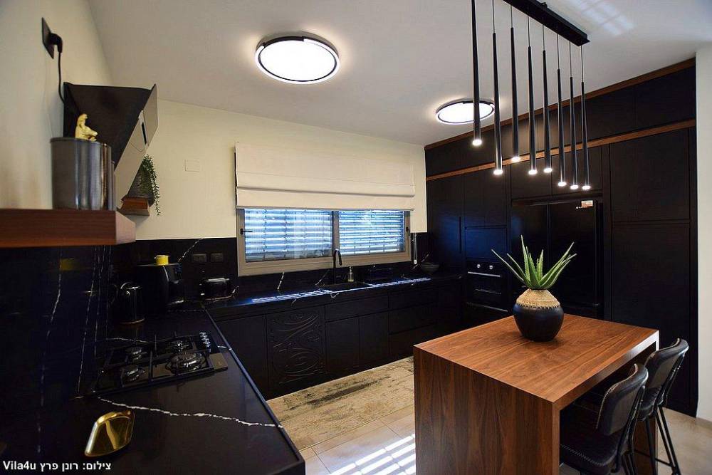 - מטבח מאובזר הכולל: כיריים גז, מקרר, תנור אפייה, מיקרוגל, מתקן שתייה וכלי הגשה